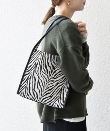 〔ONE SIZE〕SHIPS any: レオパード ゼブラ スクエア トート バッグ