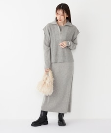 〔ONE SIZE〕SHIPS Colors:〈手洗い可能〉ベスト × ニット ワンピース セット◇