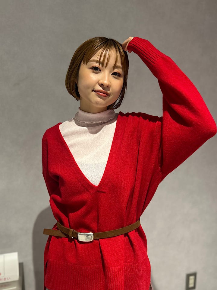 素材感・着心地:ゆるっとたっぷりなシルエットがかわいくあたたかいニットです。長め丈でショートパンツを合わせるのもおすすめです。