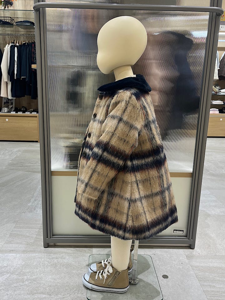 〔100〕SHIPS KIDS:100〜130cm/シャギー チェック コート