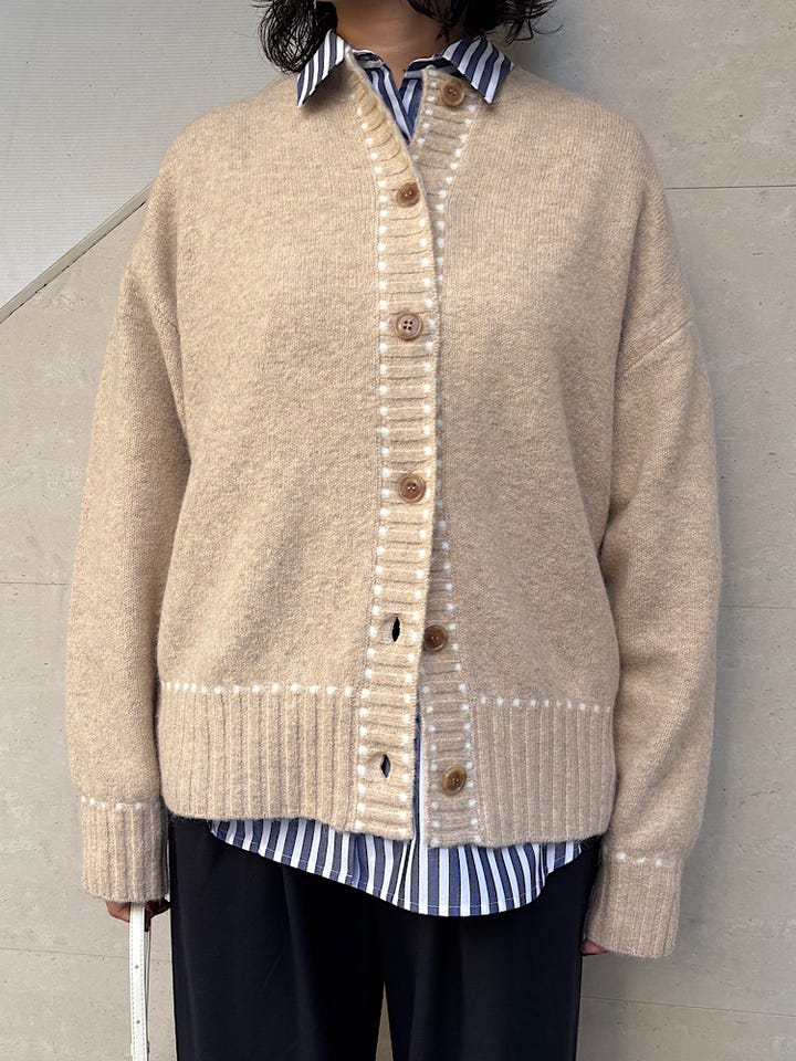 ◆ 商品名: ステッチデザインルーズニットカーディガン