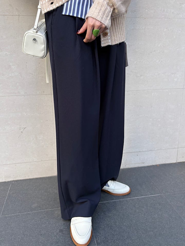 ハイウエストで形もきれいなので、とても脚が長く見えます◎ インした時も、タックが入っていてきれいです。