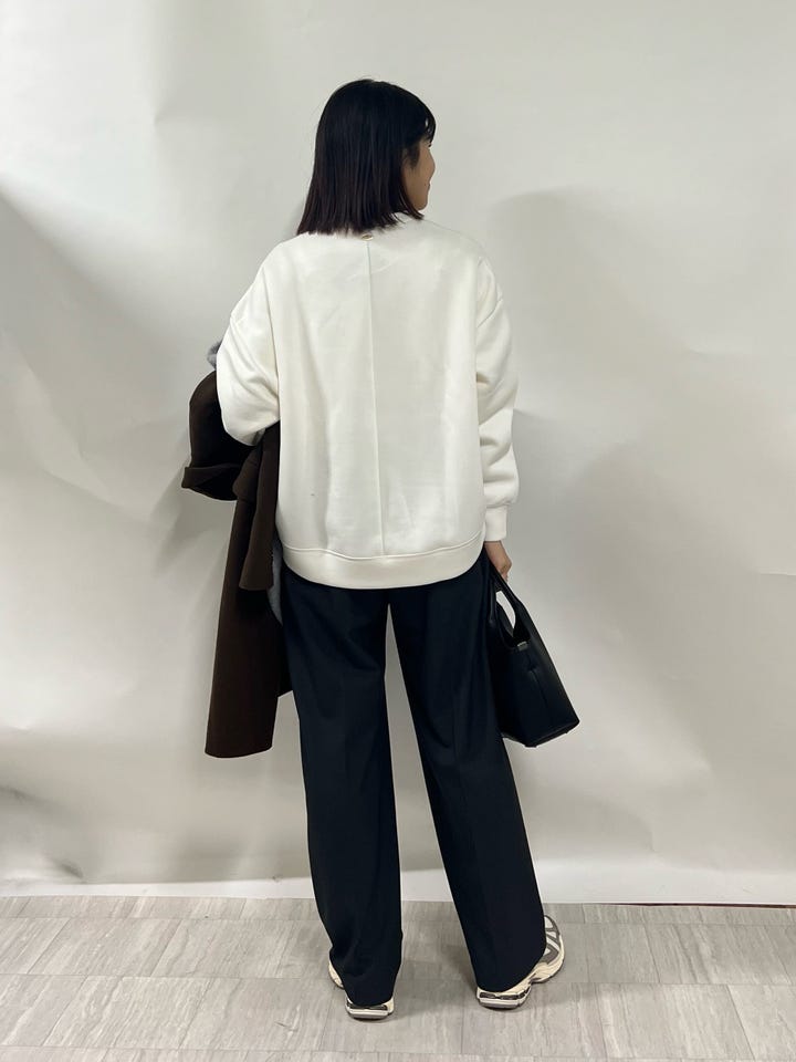 ストレートシルエット。ワイドですが落ち感があり、スッキリ見えます。