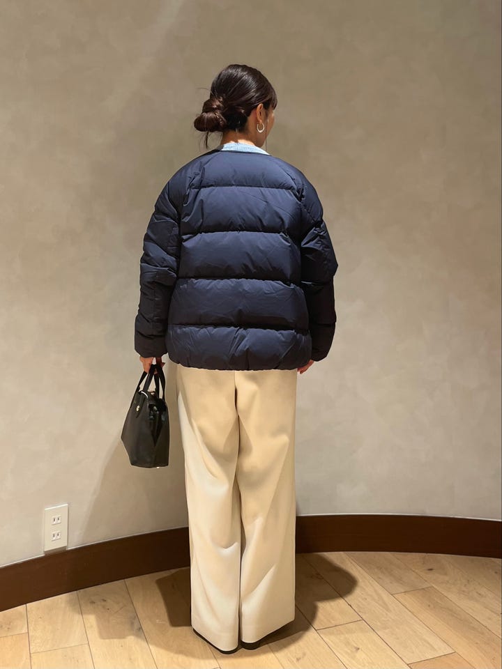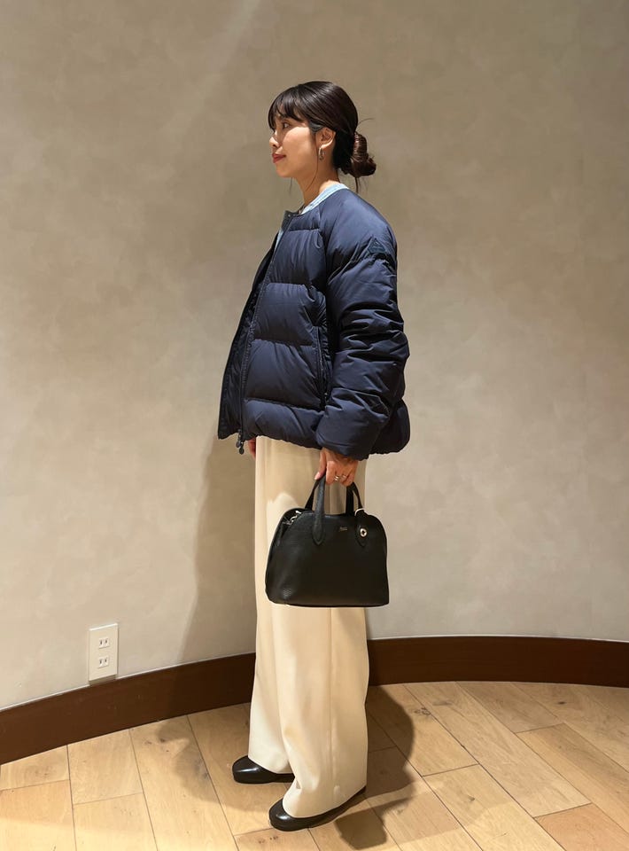 身幅もゆとりあがあるので少し厚めのインナーも入ります。ヒップにかかる長さです。