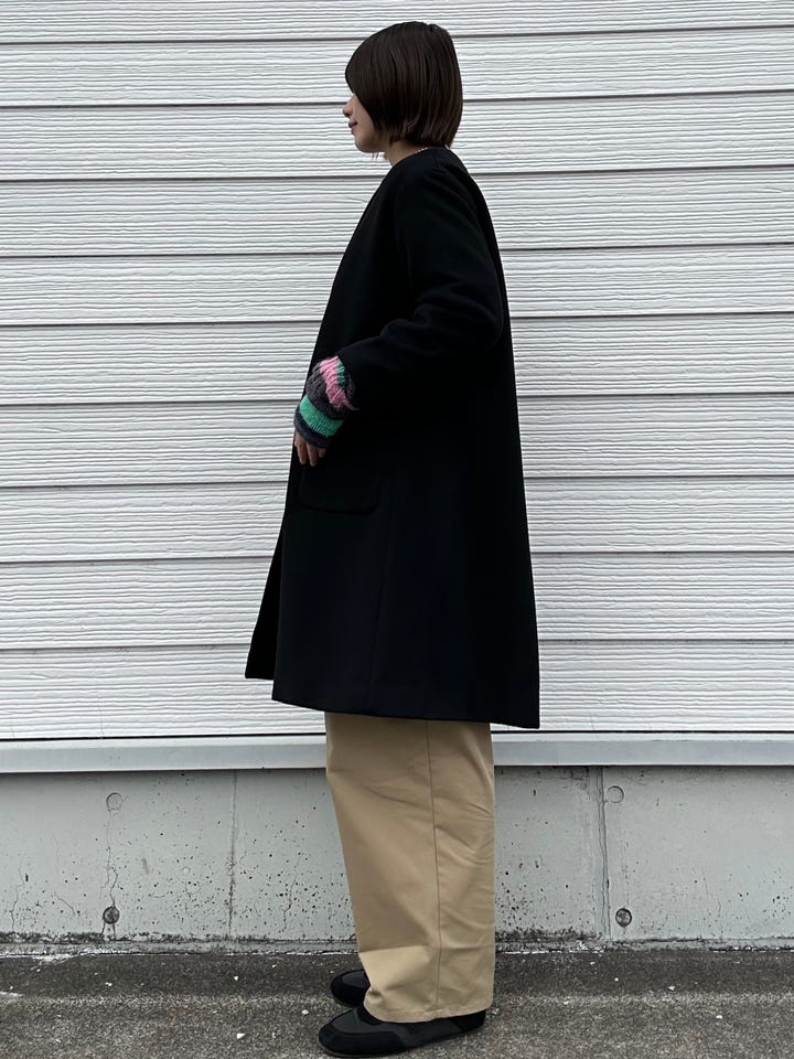 〔SMALL〕SHIPS Colors:SUPER100 ウール ノーカラー コート◇