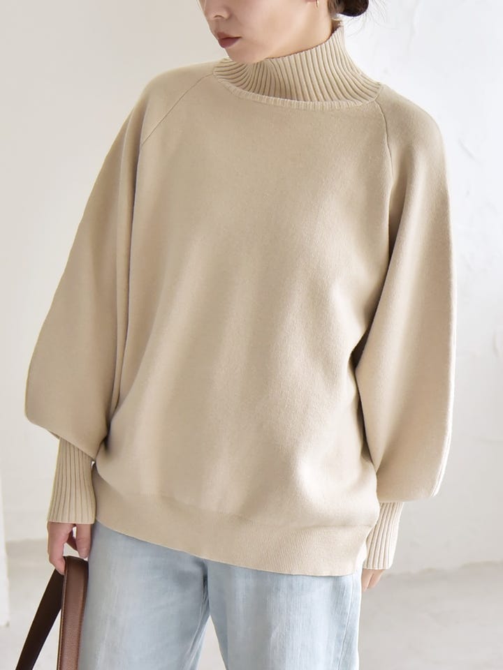 〔ONE SIZE〕quaranciel:〈洗濯機可能〉タートルネック ラグラン ロングリブ ニット プルオーバー