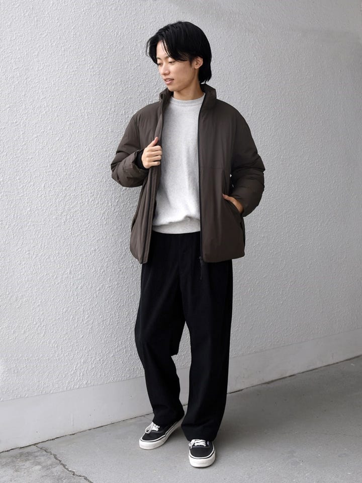 サイズ感:前を全部閉めても窮屈感なく、厚手のスウェットなども着こめます。