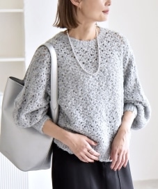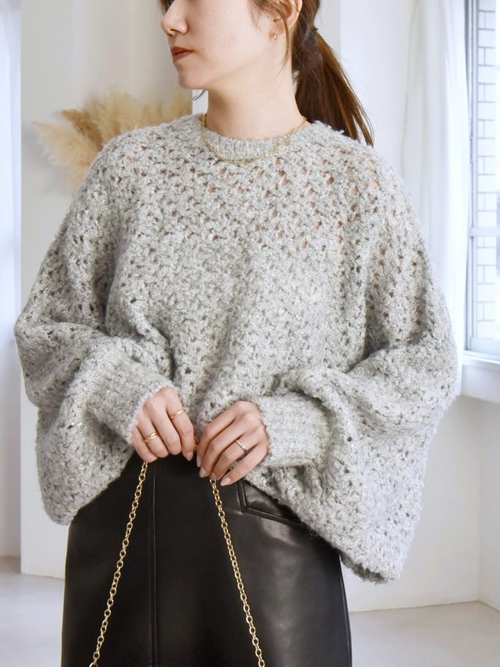 〔ONE SIZE〕quaranciel:〈手洗い可能〉スパンコール レース編み クルーネック ドルマン ルーズ ニット