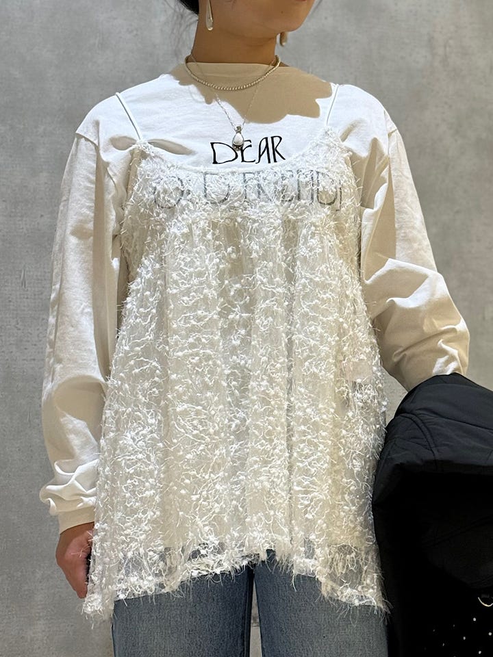 着用感 : さりげなくキラキラ輝くスパンコールが目を引くキャミソールです。カジュアル合わせはもちろん、スカート合わせで大人綺麗めに取り入れるのも可愛いです。シンプルなコーデにプラスワンするだけでぐっとお洒落見えします。
