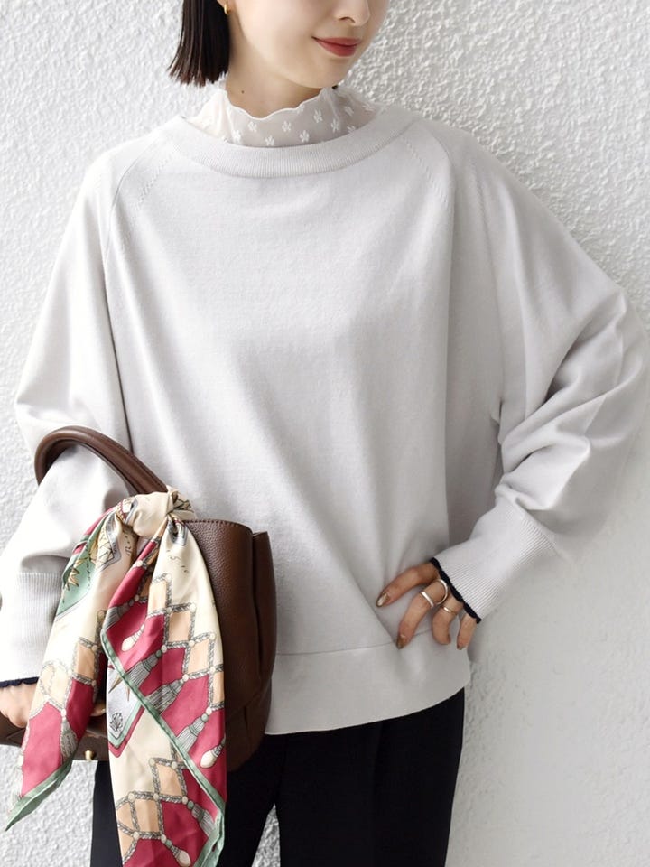 〔ONE SIZE〕〈手洗い可能〉コットン カシミヤ混 スカラップヘム ボートネック プルオーバー