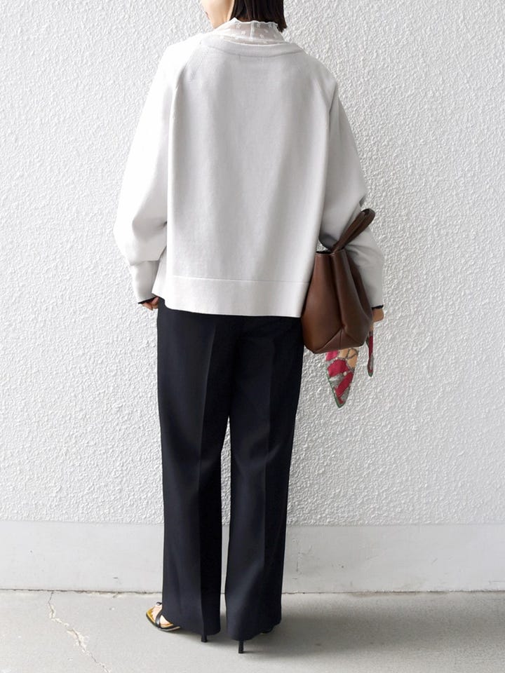 着心地:程よくハリ感があるため型崩れしにくく、きれいなシルエットをキープしてくれます。春秋冬と、ロングシーズン着回しがきくアイテムです◎
