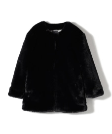 〔ONE SIZE〕SHIPS Primary Navy Label:フェイク ファー ノーカラー ハーフ コート