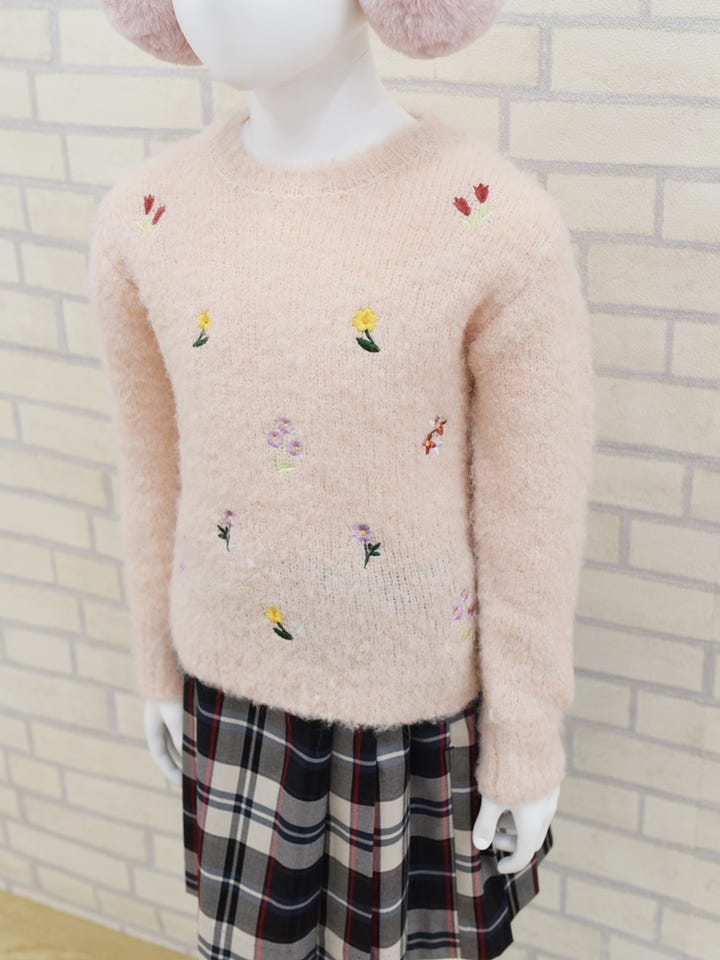 〔120〕SHIPS KIDS:100〜130cm /〈洗濯機可能〉シャギー エンブロイダリー ニット
