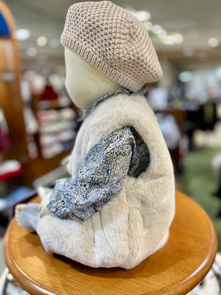 ファーベストの裏地はブラウスと同じお花柄でセットでさらにかわいさアップです◎