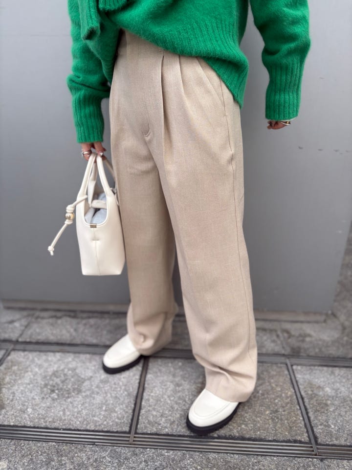 ストレートシルエットでセンタープレスも入っているので脚長効果◎