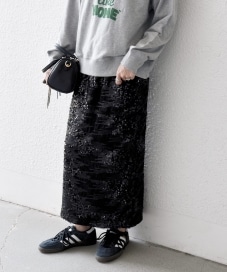 〔ONE SIZE〕SHIPS any: スパンコール ジャカード Iライン イージー スカート