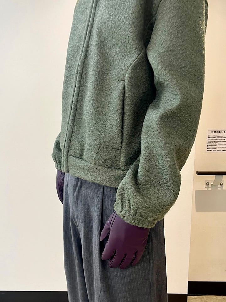 着心地 : アストラカンの様な少しクルクルとした生地が特徴的で、身幅はゆとりがあり、着丈はスッキリとしたコンパクトに着れる着心地です。
