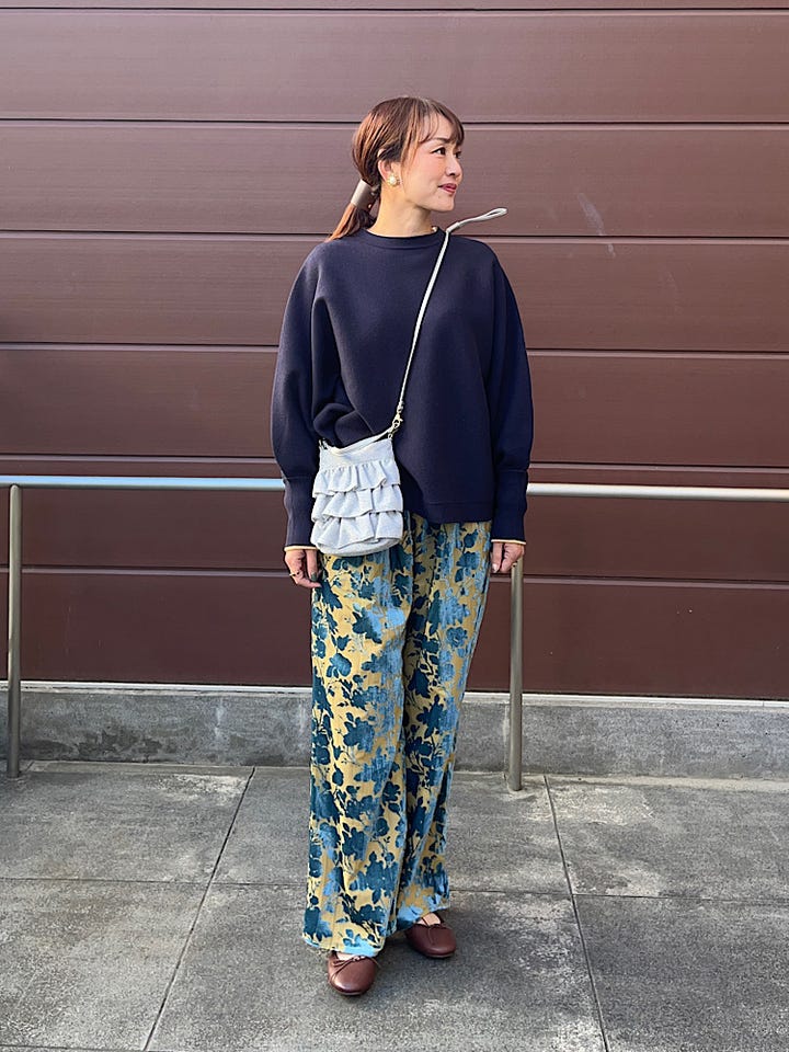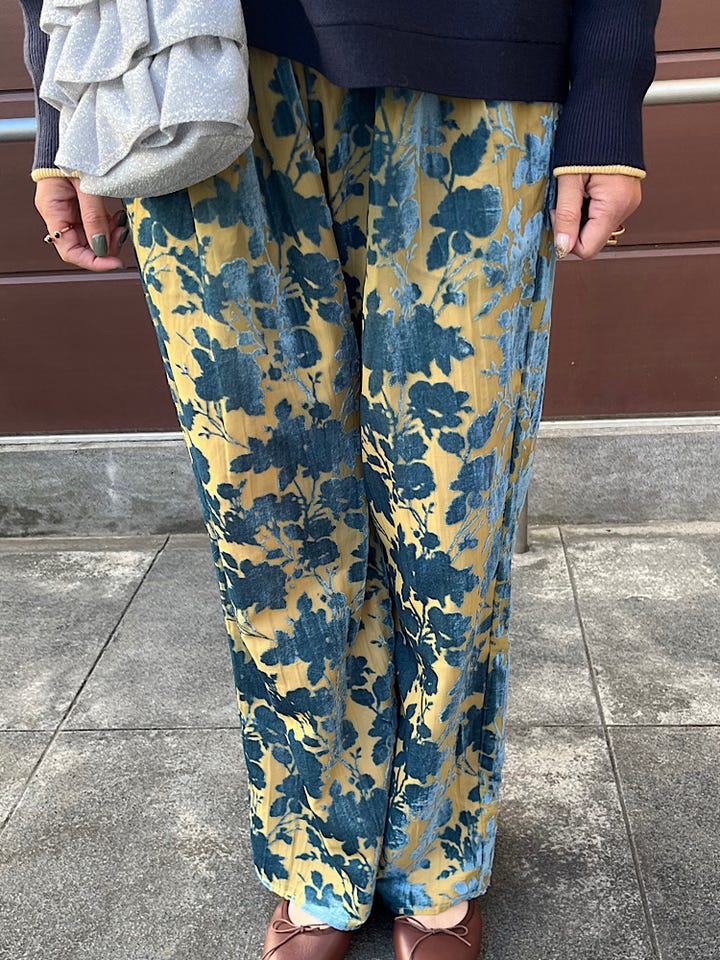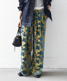 〔ONE SIZE〕SHIPS any:〈手洗い可能〉フラワー オパール タック セミワイド イージー パンツ