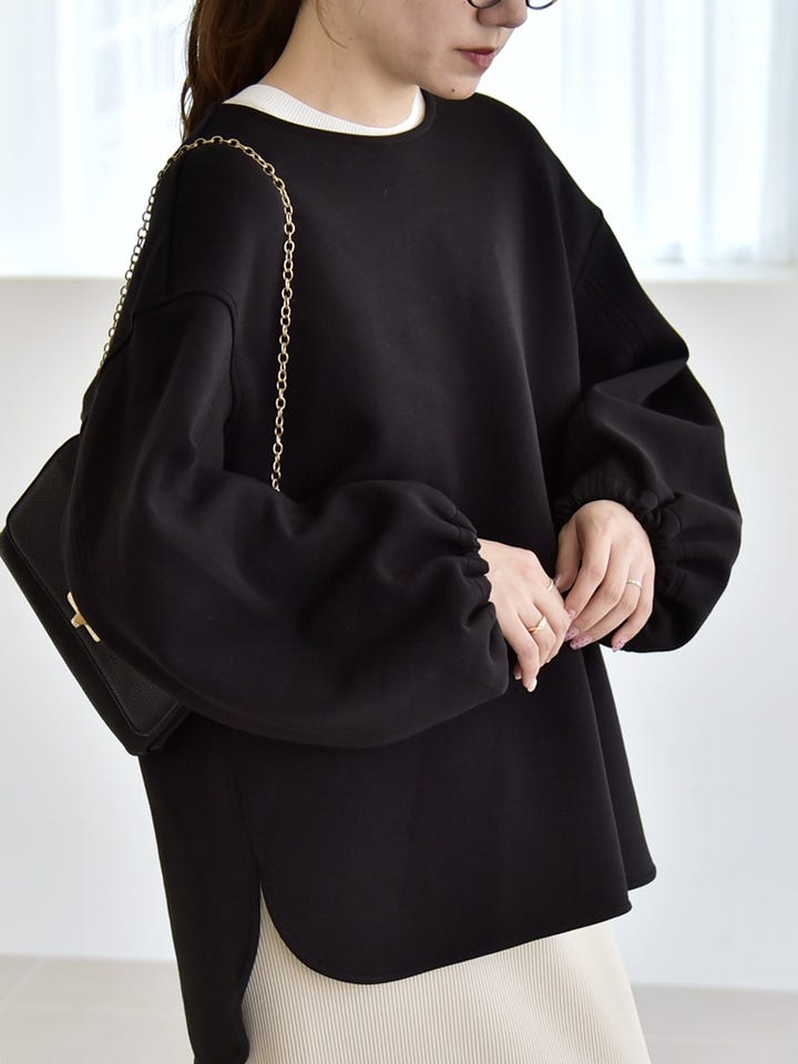 〔ONE SIZE〕quaranciel:〈洗濯機可能〉ポンチ ボリュームスリーブ ビッグ スウェット プルオーバー