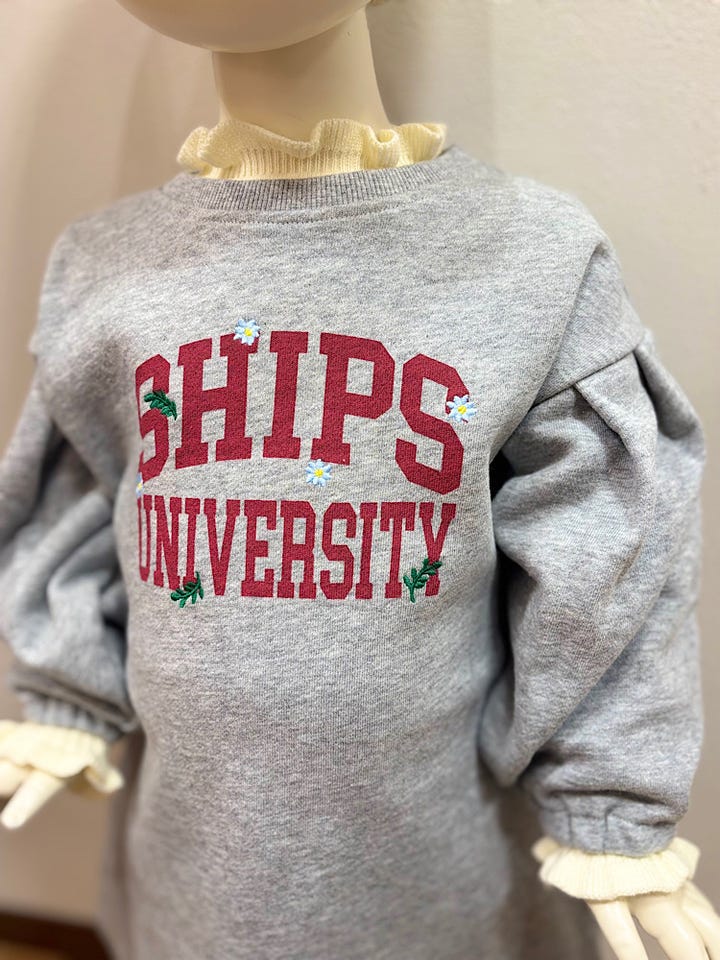 〔100〕SHIPS KIDS:100〜130cm / カレッジロゴ フラワー 刺繍 スウェット ワンピース