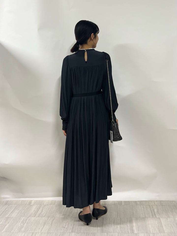 〔ONE SIZE〕〈手洗い可能〉カッセン ギャザー ベルト付き 長袖 ワンピース