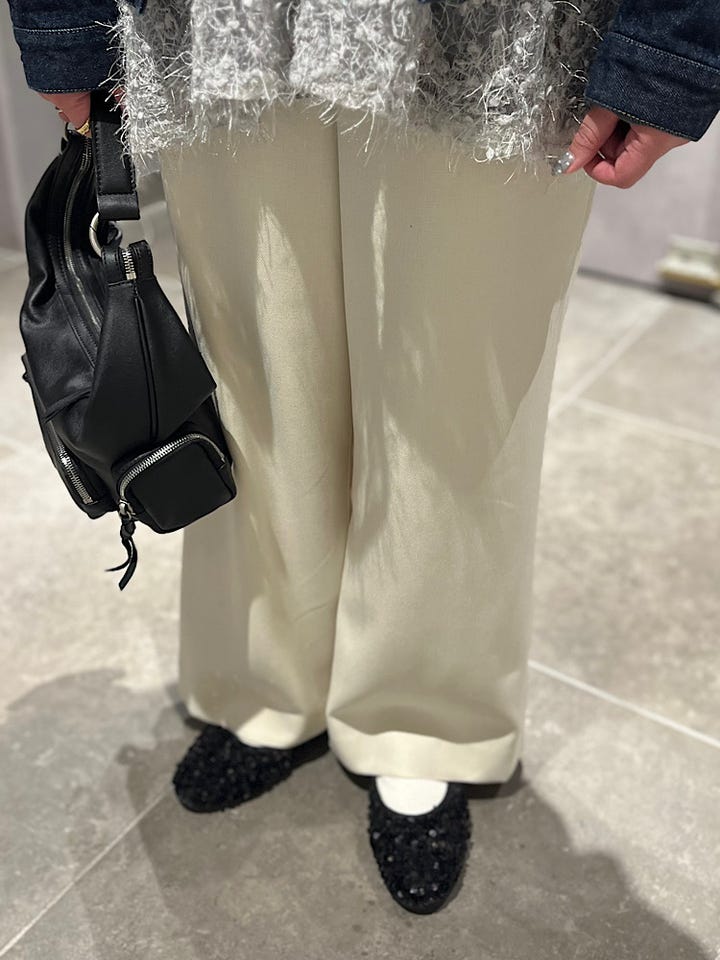 素材感/着心地:ウエストがドロストなどで楽に履いていただけます。ベルトループも付いているのでベルトで調節することも出来ます。