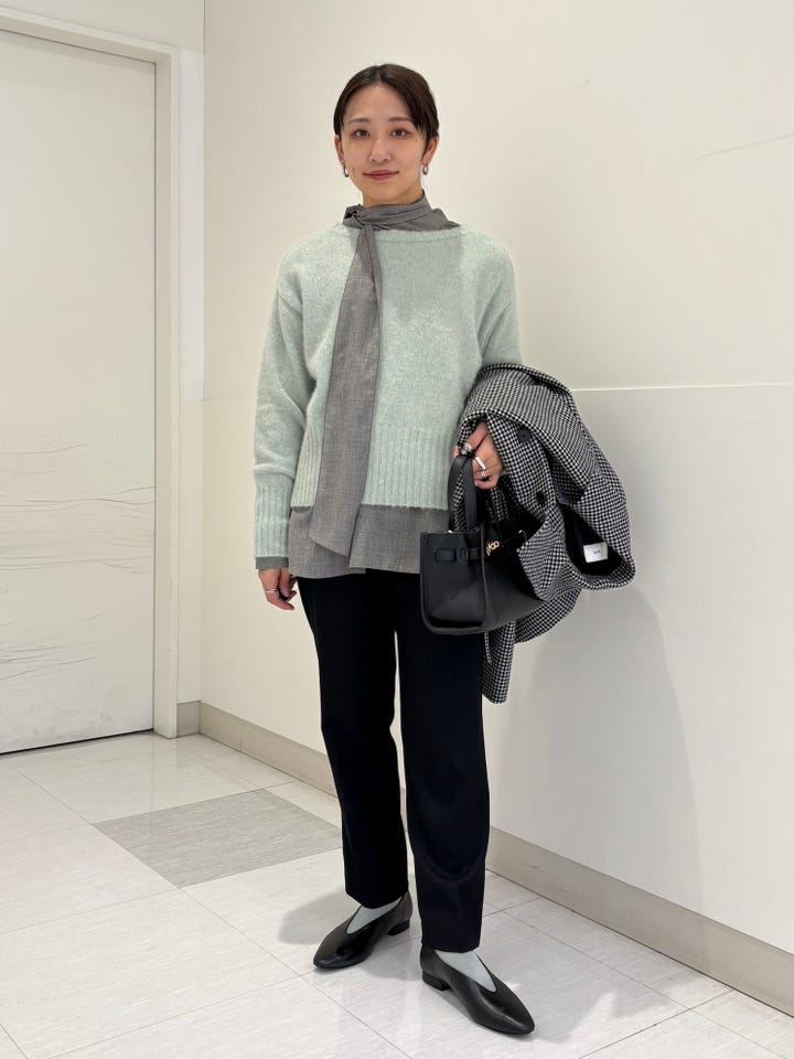 身幅はゆったりですが丈が長すぎず、ルーズな印象ににならないアイテムです。素材が滑らかで気持ちよく、一枚で着るのもいいですが、シャツやタートルネックを重ね着するのもおすすめです!他には無い色味が可愛いアイテムです!