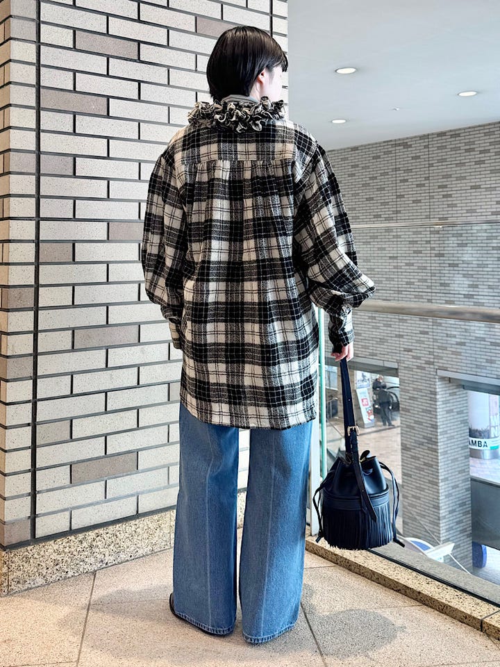 〔ONE SIZE〕crinkle crinkle crinkle:griguri ウール チェック シャツ