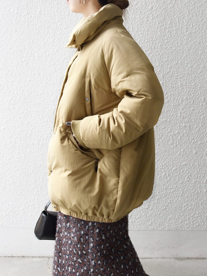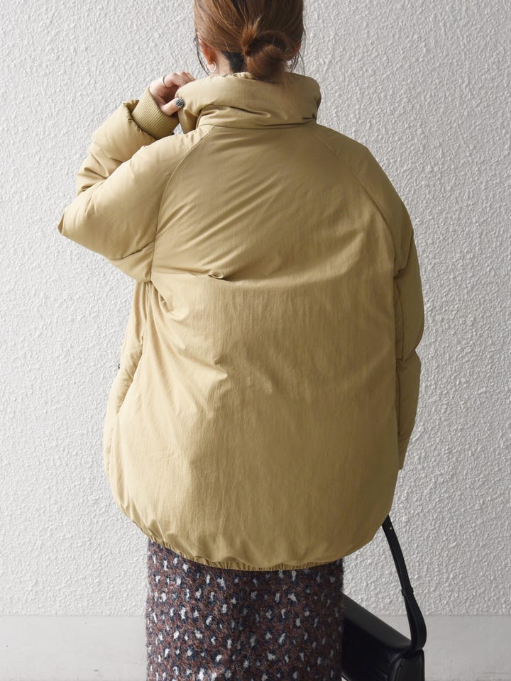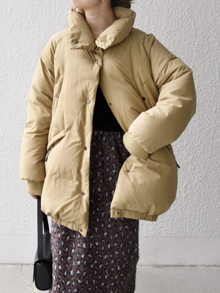 着用アイテム:SHIPS any: ナイロン スタンドカラー ダウン コクーン コート