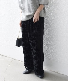 〔ONE SIZE〕SHIPS any:〈手洗い可能〉フラワー オパール タック セミワイド イージー パンツ