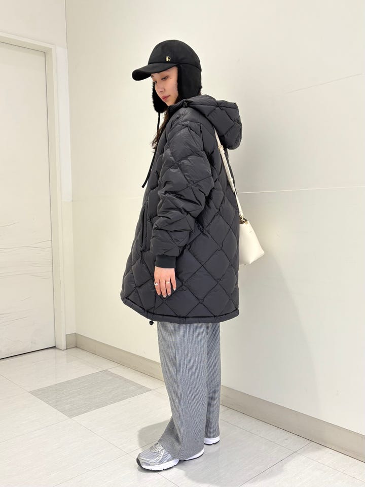 36サイズでも充分ゆとりのあるサイズ感。とても軽い着心地です。洗濯もできるため、気軽に羽織れるアウターにおすすめです!丈が長く、お尻まで隠れるため安心感があり、暖かさもバッチリです◎裾の絞りを絞れば、膨らみが抑えられ、着膨れ防止にもなります!