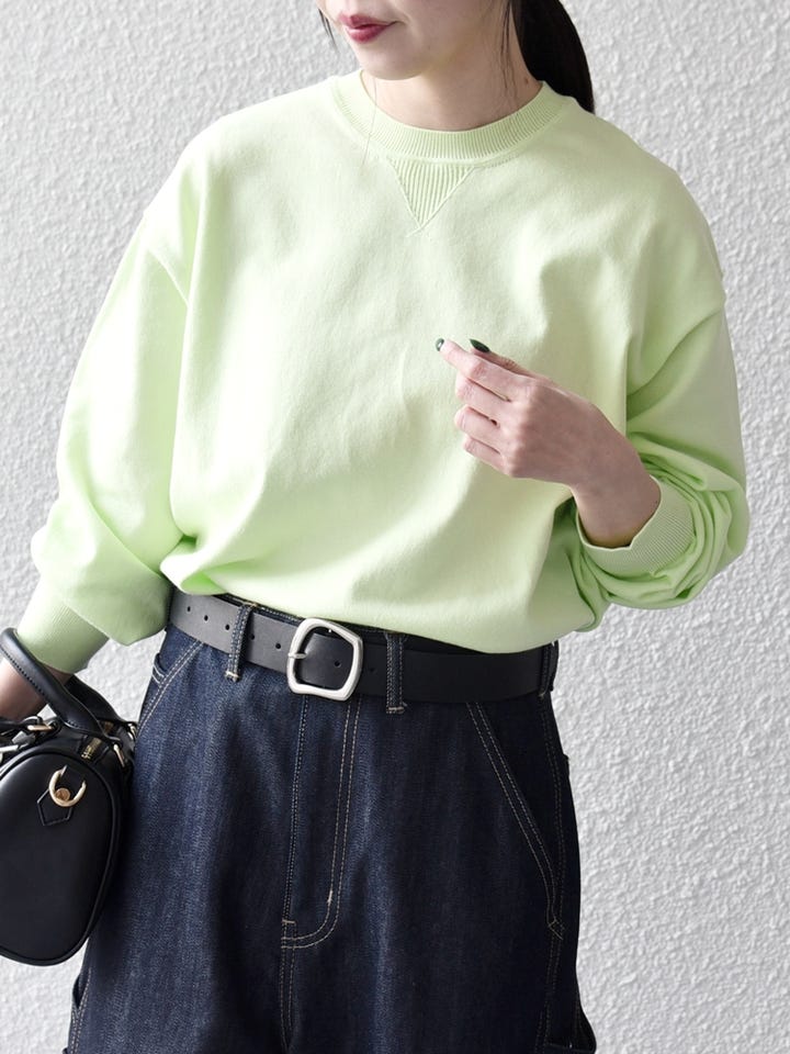 着用アイテム:SHIPS any:〈手洗い可能〉スウェットライク ニット プルオーバー ライトグリーン