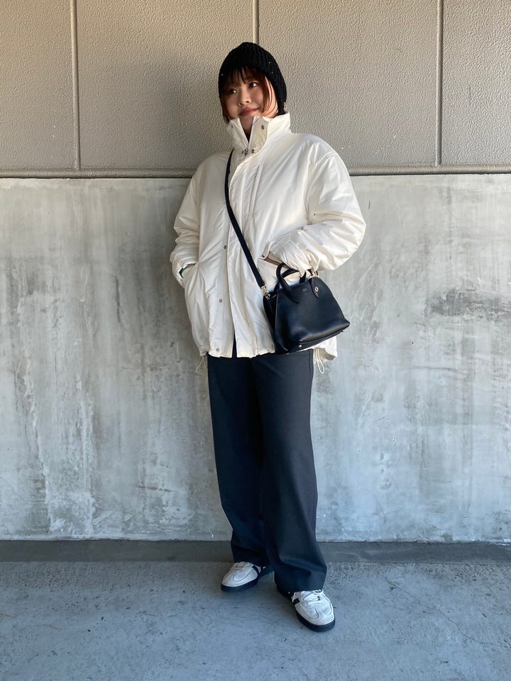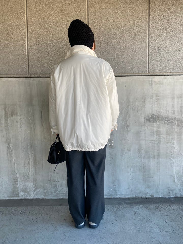 着心地:軽くて暖かい中綿ジャケット!肩や首に負担が無く、サッと羽織っていただけます。ダブルジップタイプなので、下からウエストラインまで開けて着ると抜け感がでてオススメです!スタンドネックでカジュアルになりすぎず着られます。イタリアのlining素材メーカー「IMBOTEX」社の中綿を使用。