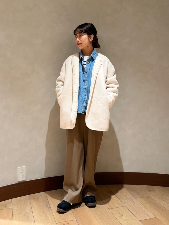 着心地:軽いです。袖幅もしっかりあるのでインナーも選びやすいです。ボアとフリースのリバーシブル仕様です。