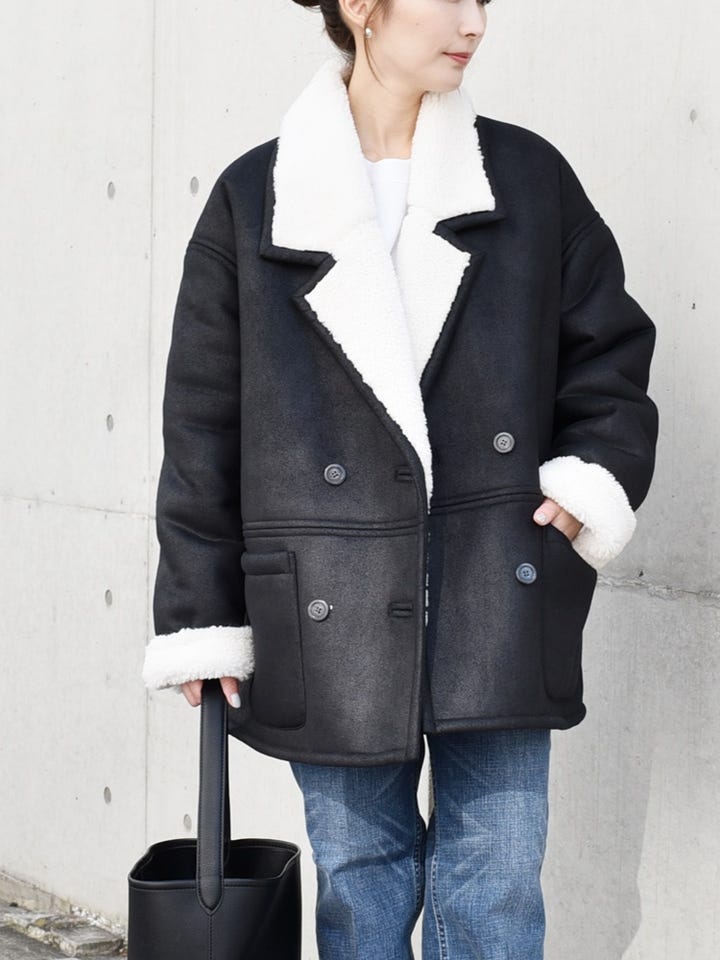 〔ONE SIZE〕quaranciel: ムートンライク ボア ボンディング ジャケット コート