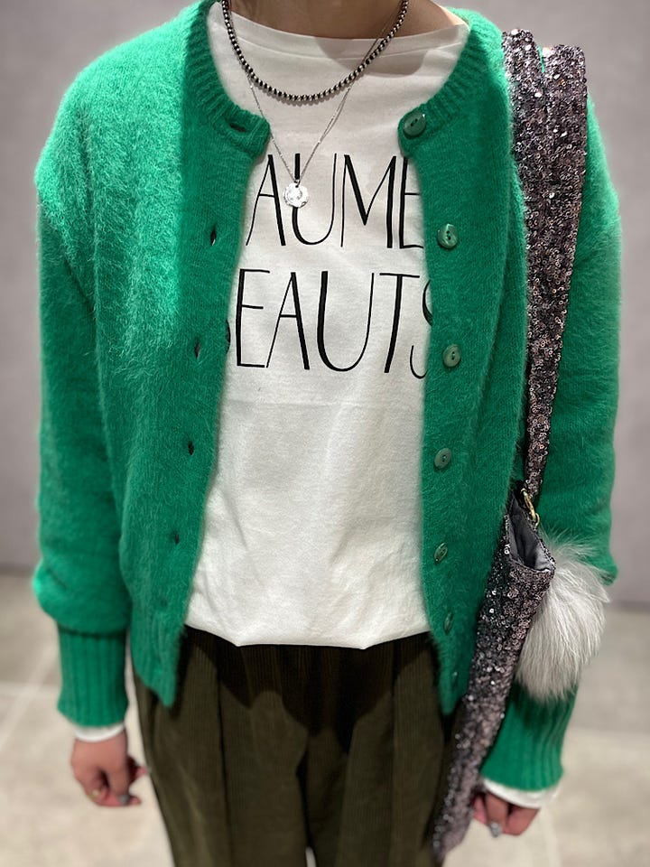 〔ONE SIZE〕【一部WEB限定】〈手洗い可能〉フォックス クルーネック ニット カーディガン