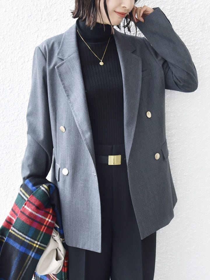 サイズ感:程よくジャストなサイズ感です。ウエストが軽くシェイプされた女性らしいシルエットで、羽織るだけでスタイルアップ効果があります。