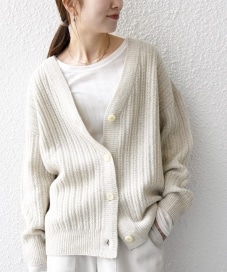 〔ONE SIZE〕SHIPS any: リブ タック編み Vネック ルーズ ニット カーディガン