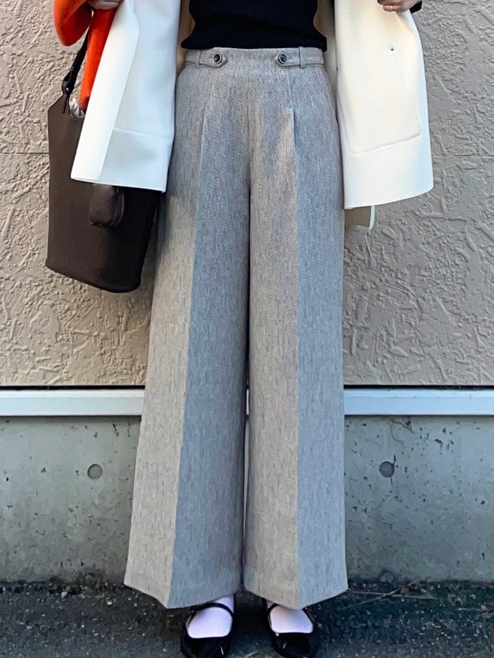 〔MEDIUM〕SHIPS Colors:〈手洗い可能〉カラー ミックス ツイード ボタン ワイドパンツ◇
