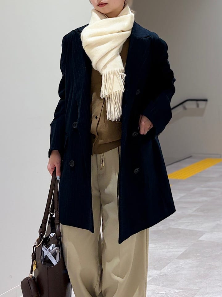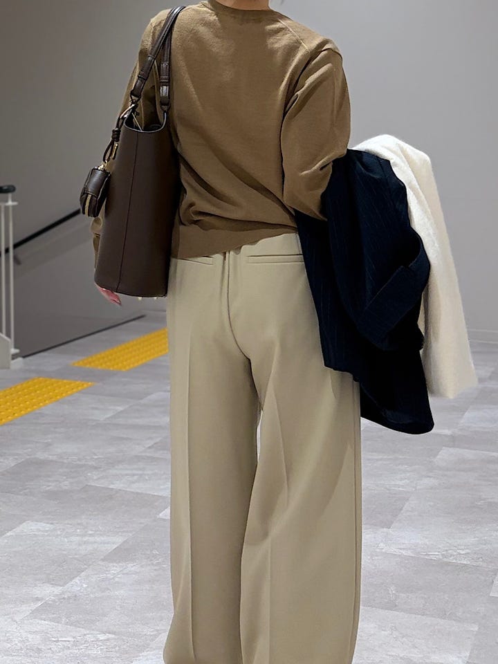 【素材感・着心地】落ち感のきれいなシルエット。かなり着心地も◎シワにもなりにくく、タックがついているので腰周りもスッキリ見せてくれます!白は春先にも活躍してくれそうなクリームぽいカラーです!