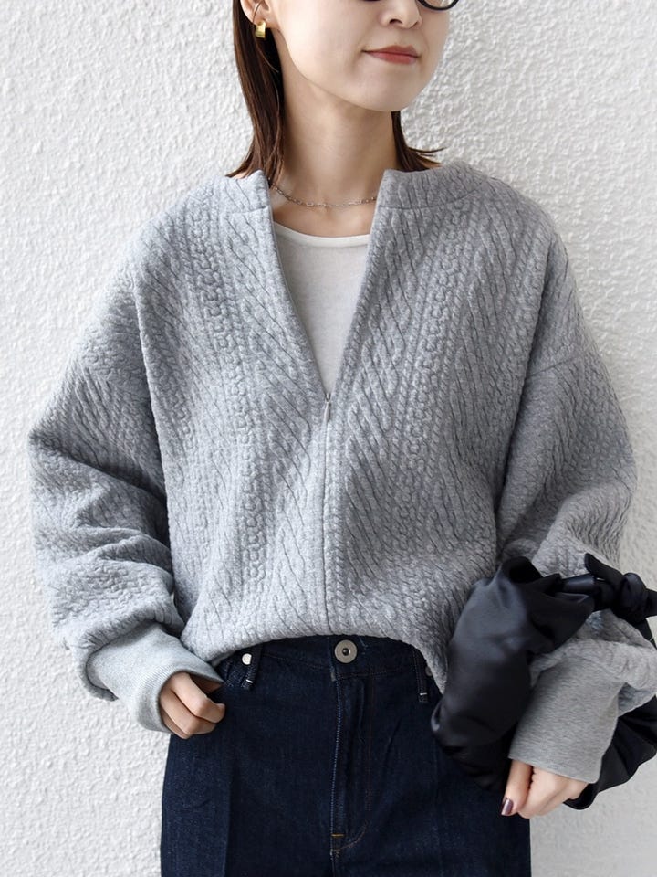 〔ONE SIZE〕《一部追加予約》〈手洗い可能〉ケーブル ジャージー スキッパー プルオーバー