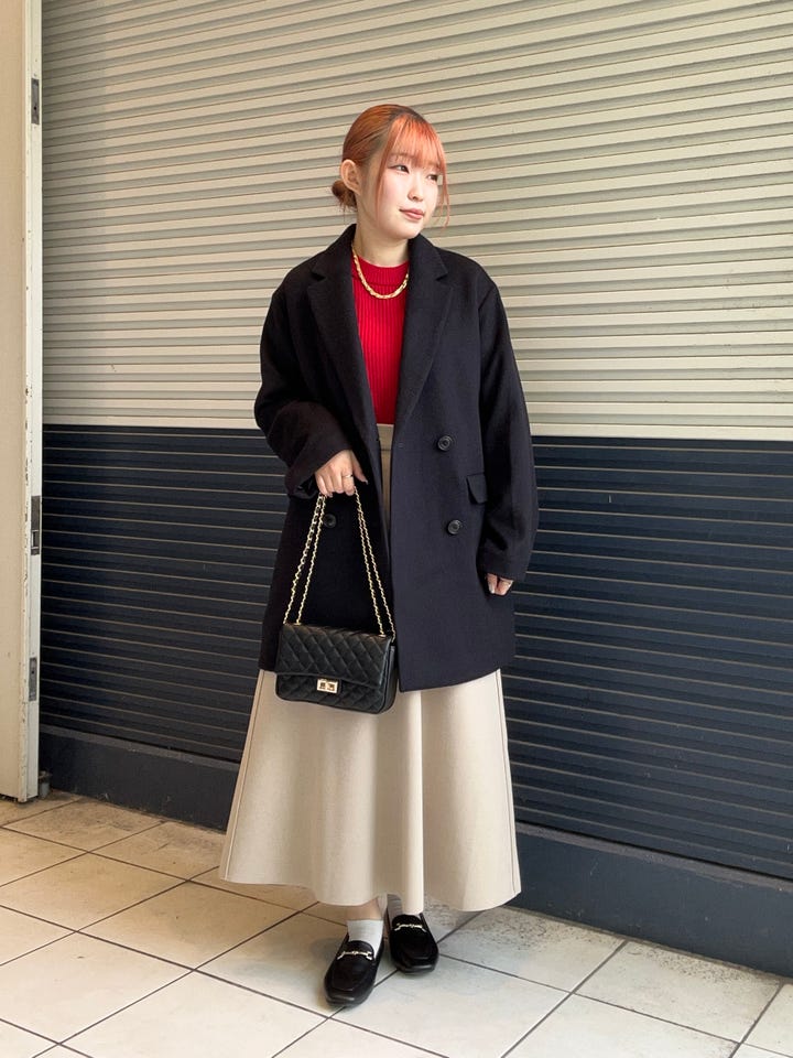 網目がしっかりと出たニットです。鮮やかな赤でアクセントになります!