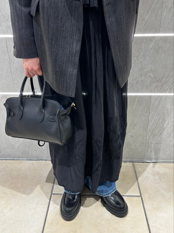 素材感・着心地:柔らかいコットン素材。ボリュームのあるシルエットですが、素材感が軽い為レイヤードしても重く見えすぎないです。裾の刺繍が素敵です。