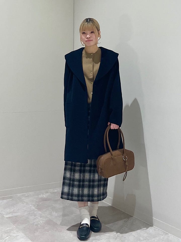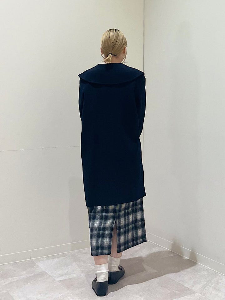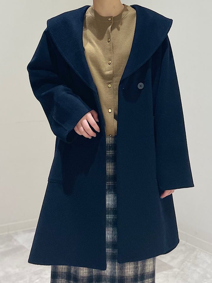 【素材感・着心地】カシミヤを配合したリバー素材で軽くて柔らかく肌触りもいいです!軽い着心地ですがとても暖かいです!ワイドな襟が特徴的で上品で女性らしい印象があります。