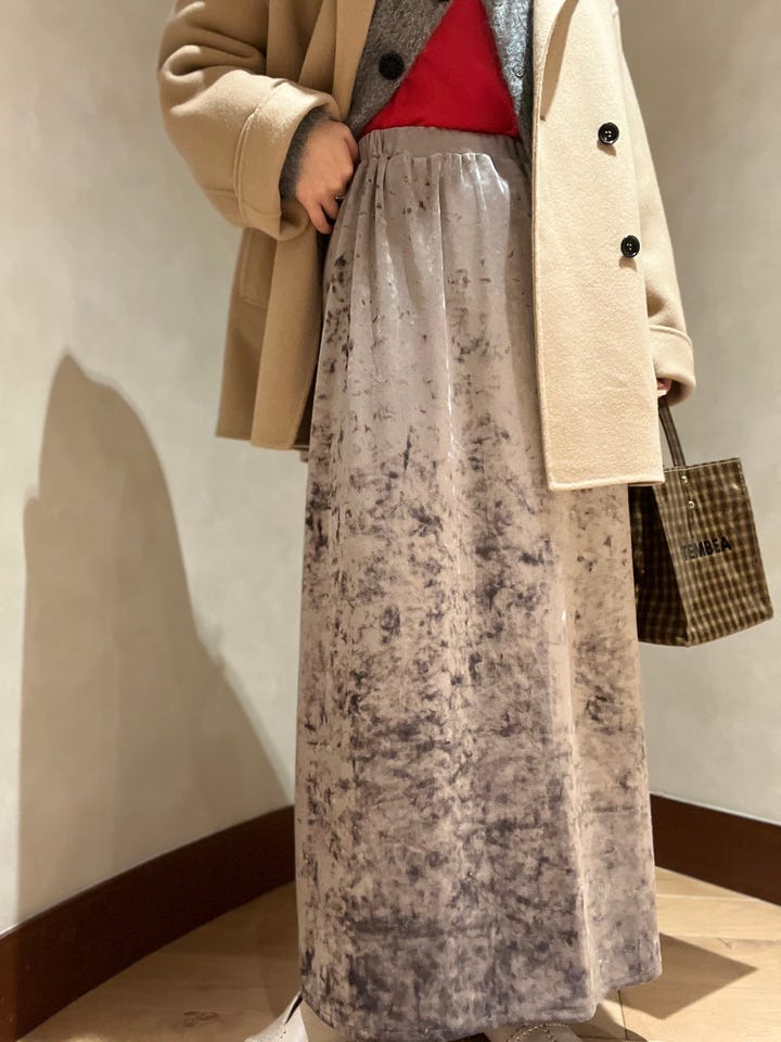 〔ONE SIZE〕〈手洗い可能〉スノー クラッシュ ポリエステル ベロア ウエスト ゴム スカート