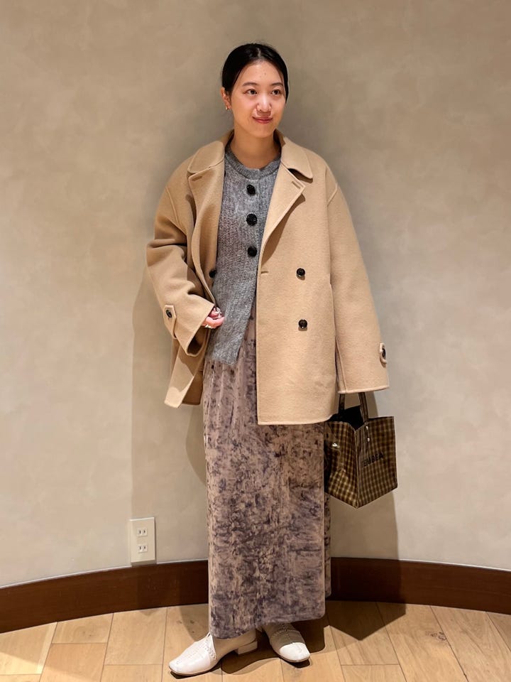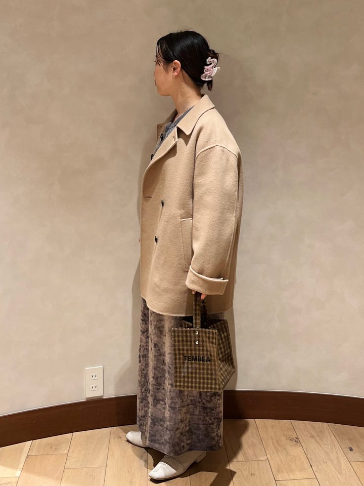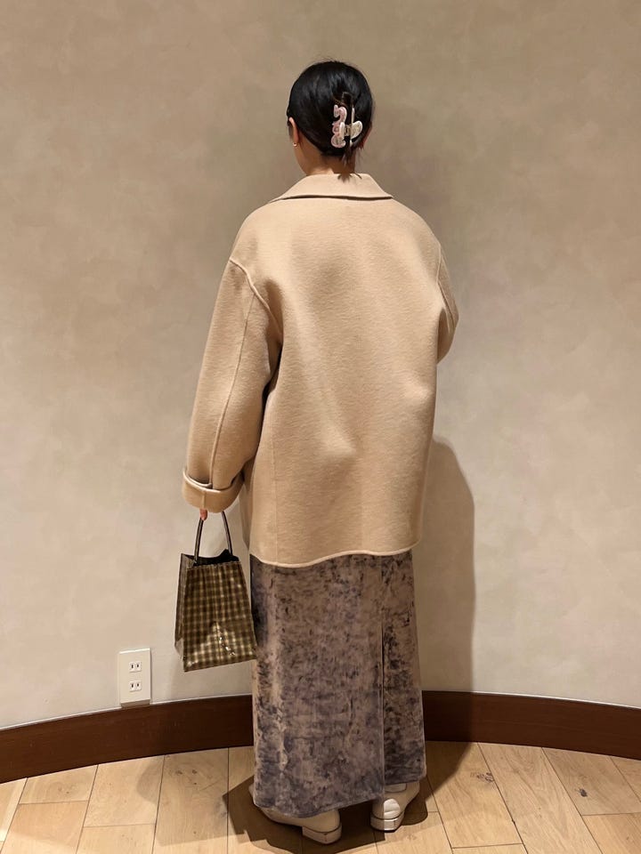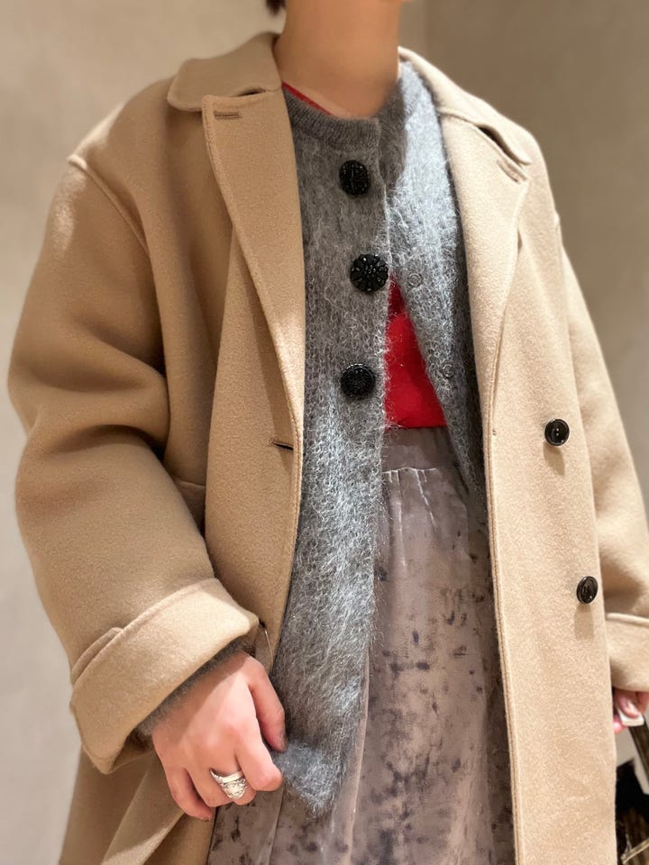 着心地:とても軽くて柔らかいコートです。優しい素材感が骨格ウェーブに合っており、オーバーサイズでも着用していただきやすいです。