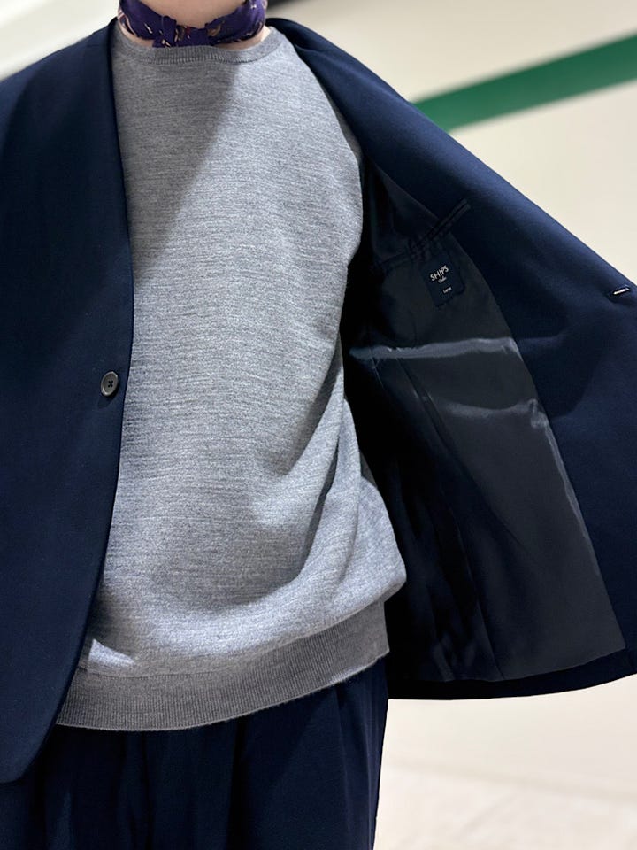 〔LARGE〕SHIPS Colors:〈手洗い可能〉TR ノーカラー ジャケット(セットアップ可能)◇