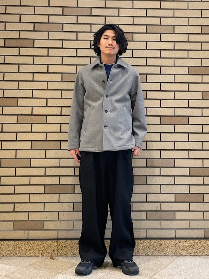 サイズ感:ゆったり目、中に厚手のニット着用できるサイズ感です。