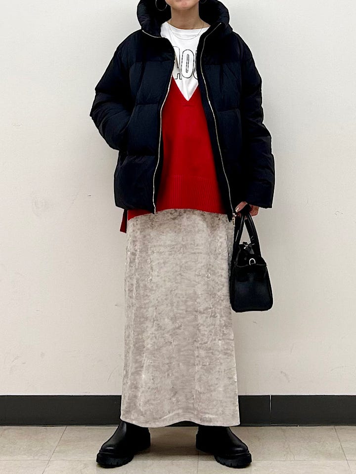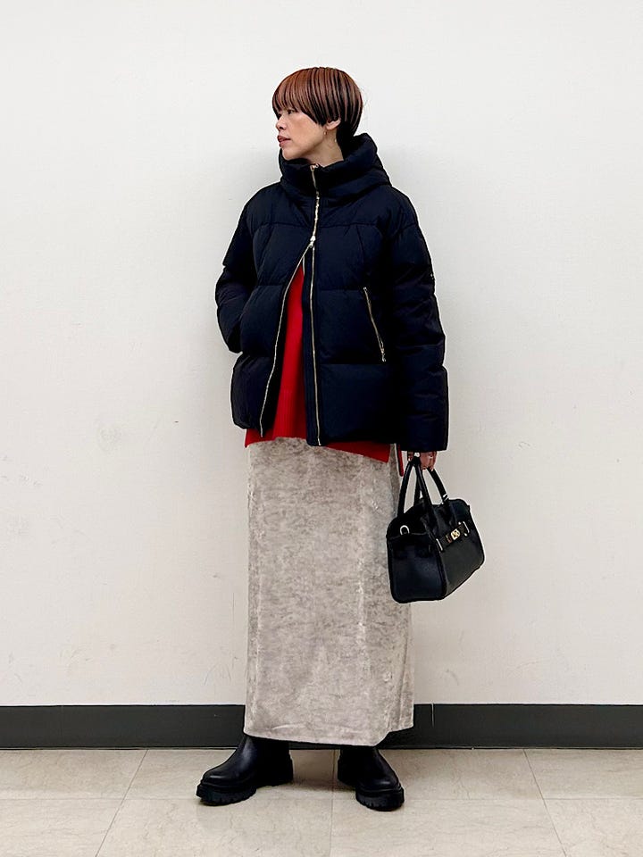 着心地:とにかく軽くて暖かい。タイト過ぎず、程よいゆとりで、インナーも選びません。ややマットな質感で、クセなく着られる素材。