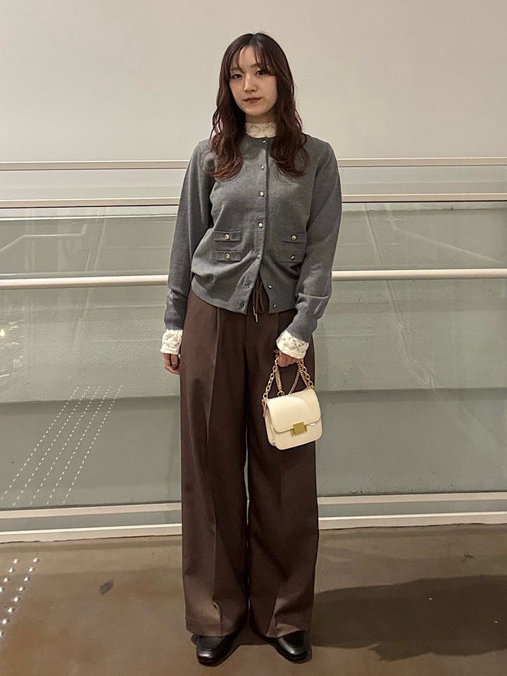 素材感/着心地:レースだけど起毛そざいのためあたたかみがあります。ジャケットインやニットなどとレイヤードするだけでアクセントになります。